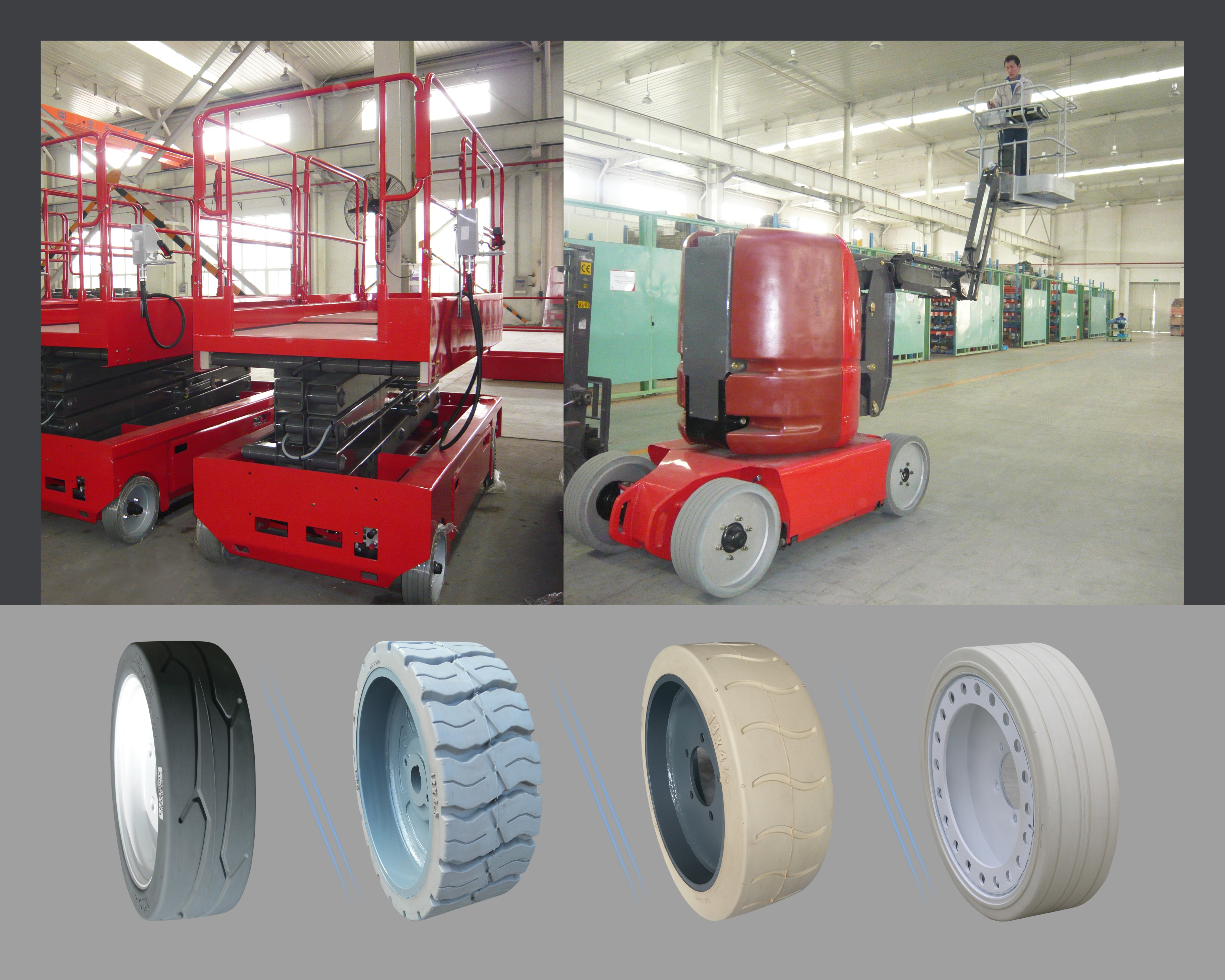 ● Food Processing and Pharmaceutical Industries: Hygiene is crucial in these sectors, and solid tires ensure there are no risks of punctures that could lead to contamination. Their smooth, reliable performance is a perfect match for these highly regulated environments.